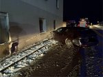 Um kurz nach 03:00 Uhr kam es auf der schneebedeckten Fahrbahn zu einem Verkehrsunfall. Ein Fahrzeuglenker verlor auf der winterlichen Fahrbahn die Kontrolle über sein Fahrzeug und touchierte ein Haus neben der Straße.